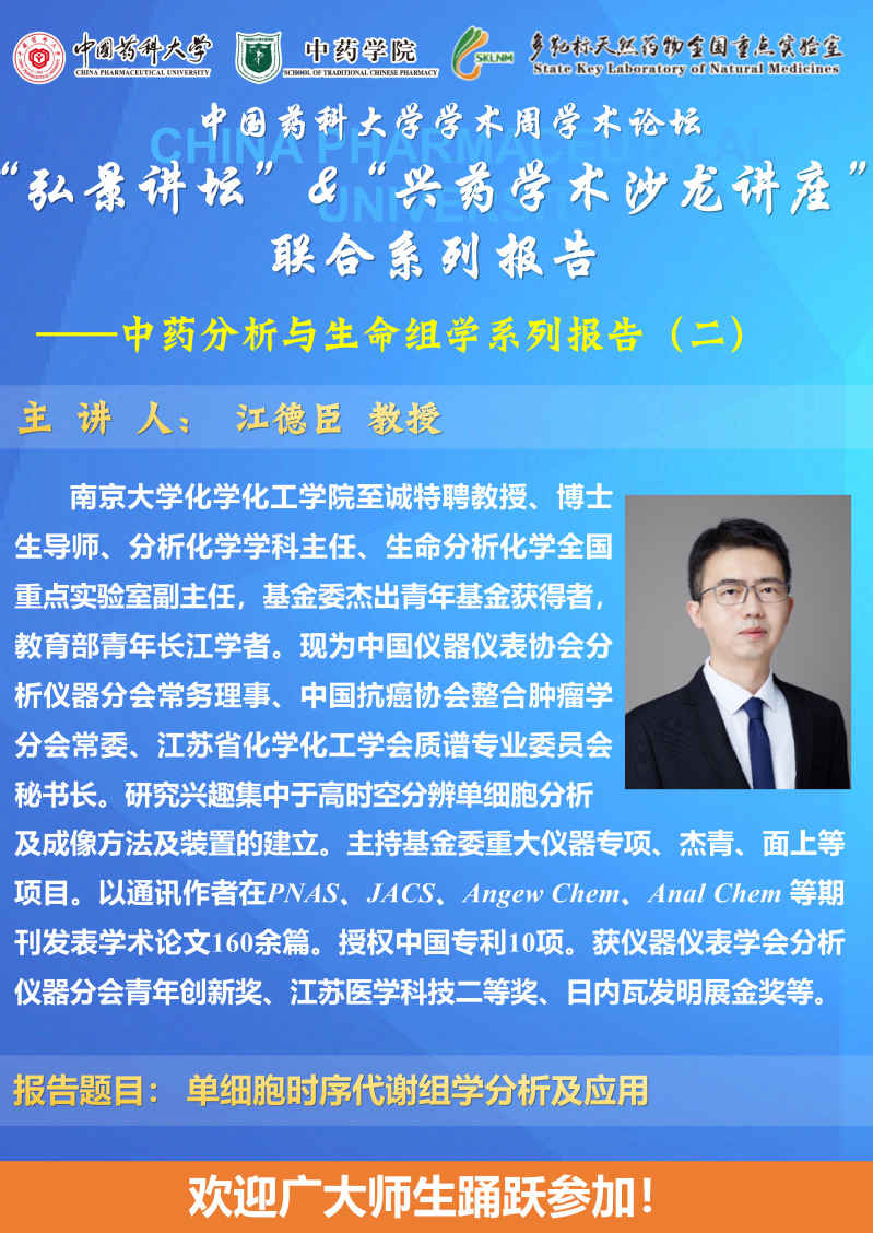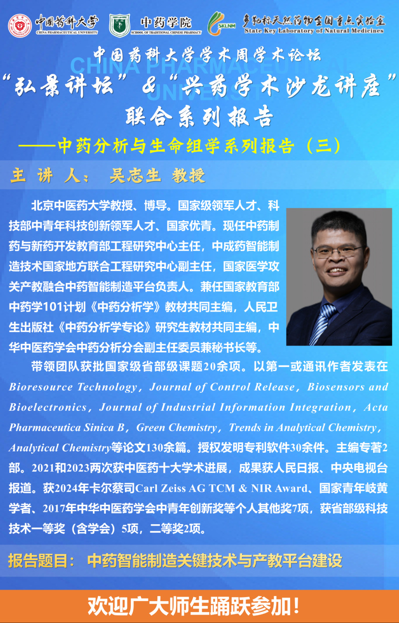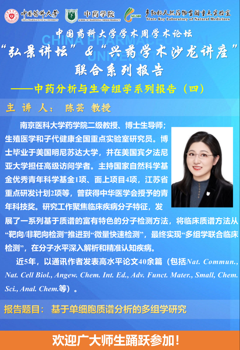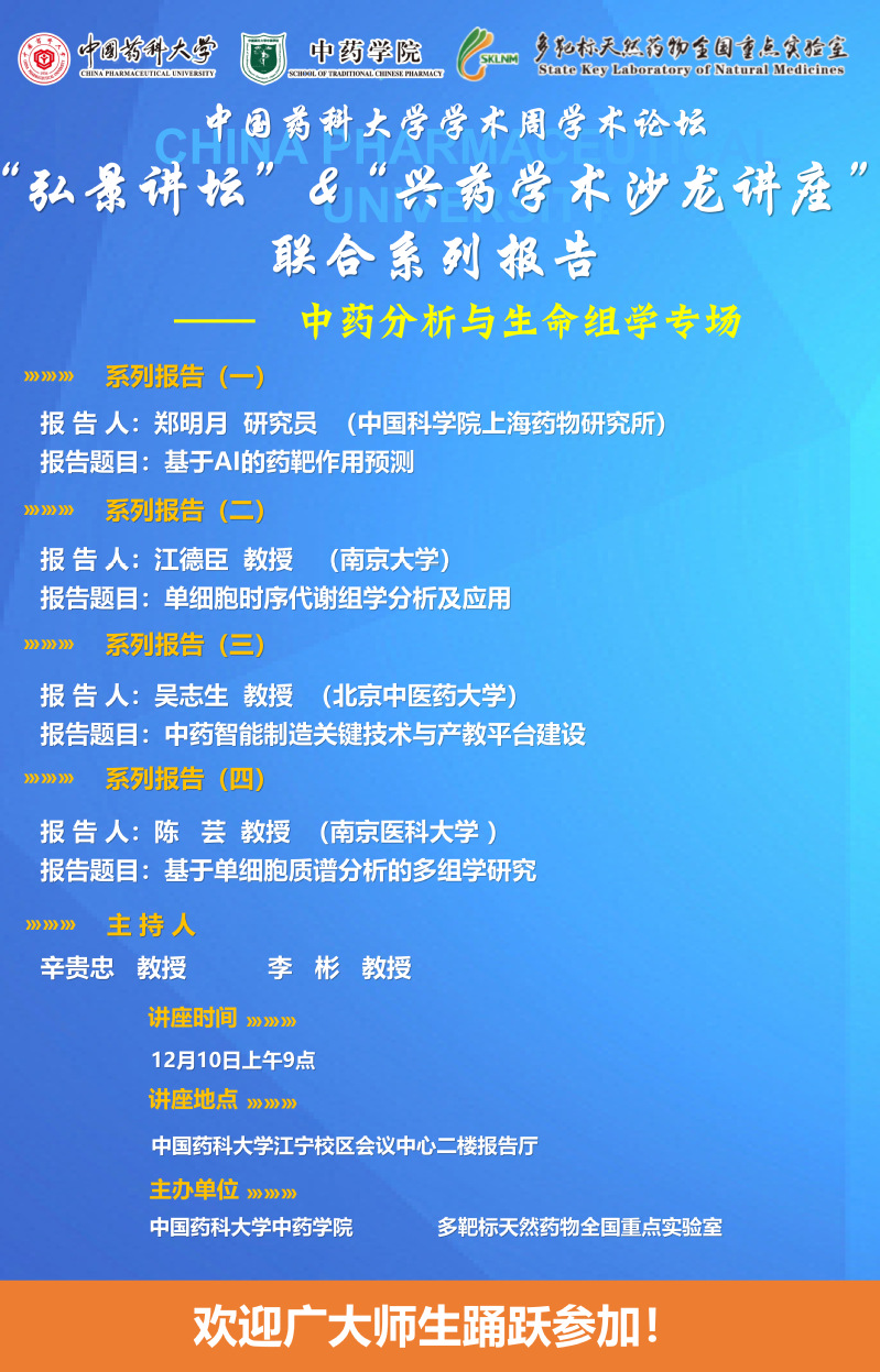 国产av 第二十八期“弘景讲坛”暨全国重点实验室兴药学术沙龙第二十二期——中药分析与生命组学专场系列报告
